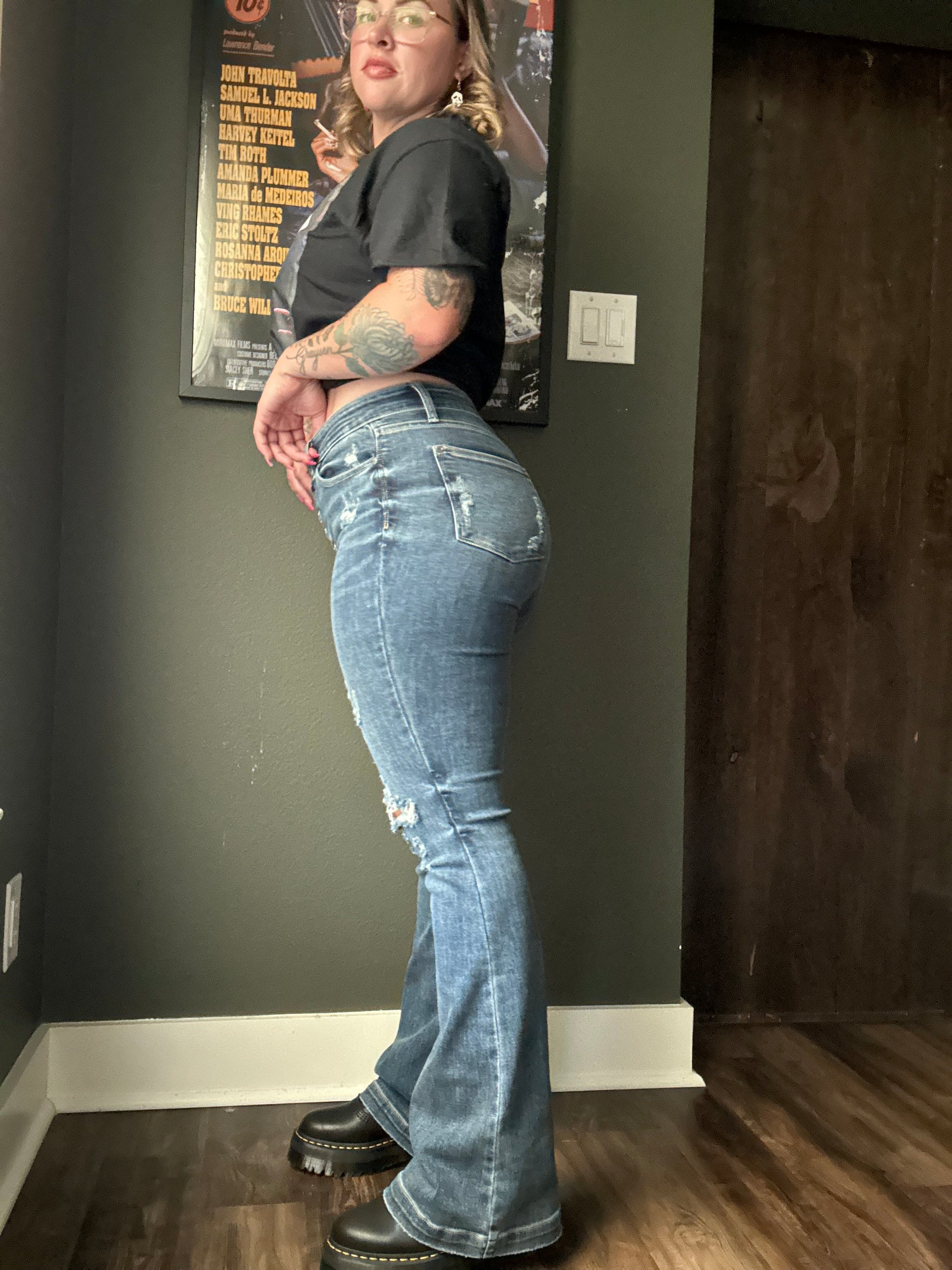 Midrise Button Fly Distressed Trouser Flare