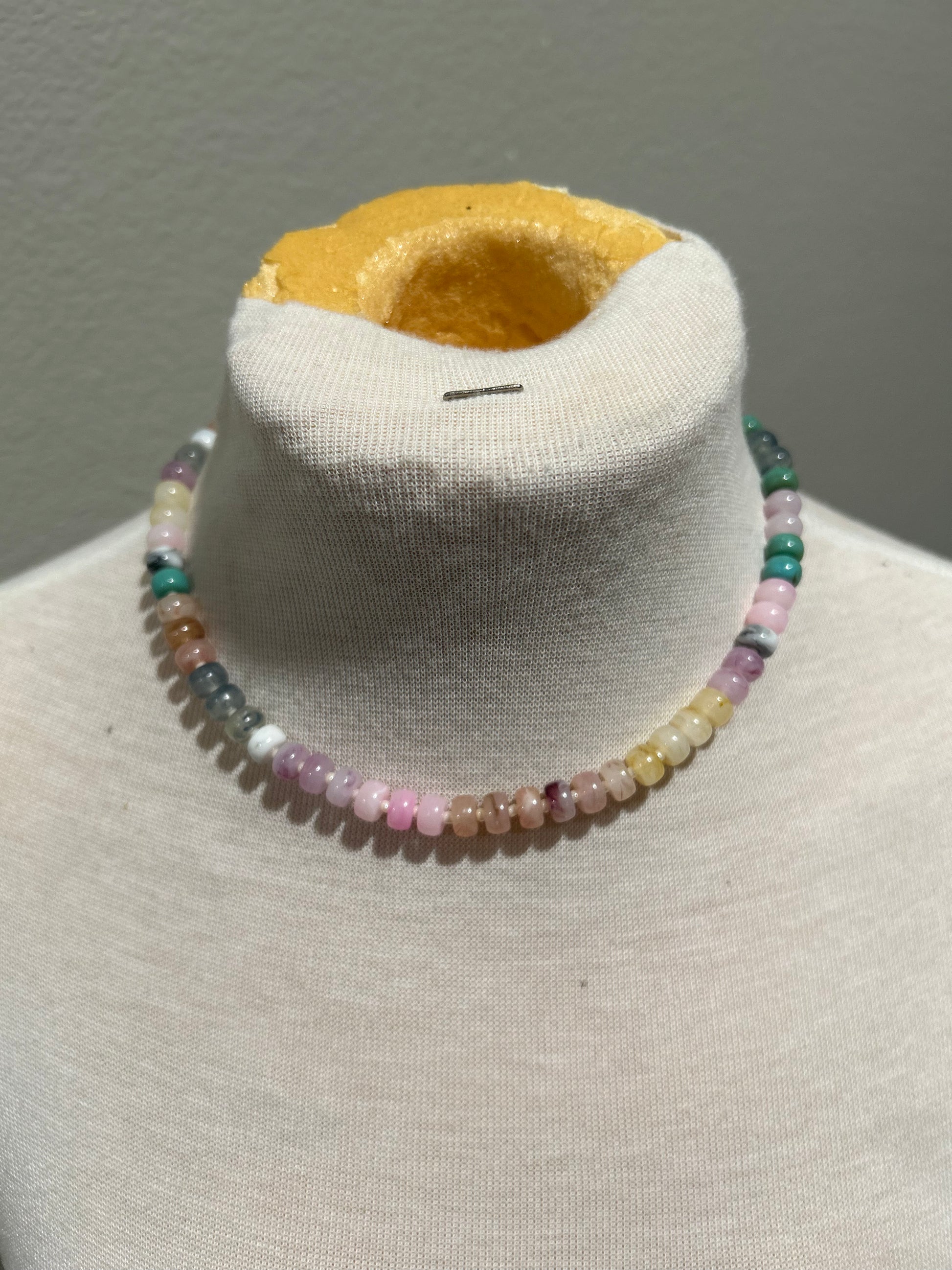 Add a pop of color with rebel charm. This rainbow necklace layers perfectly with chains or stands bold on its own—your outfit’s instant mood booster.
